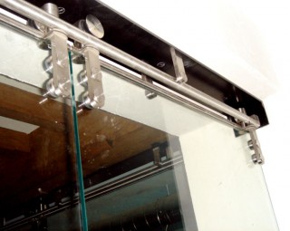 Système manuel de porte coulissante avec fixation en un point unique pour applications en intérieur.